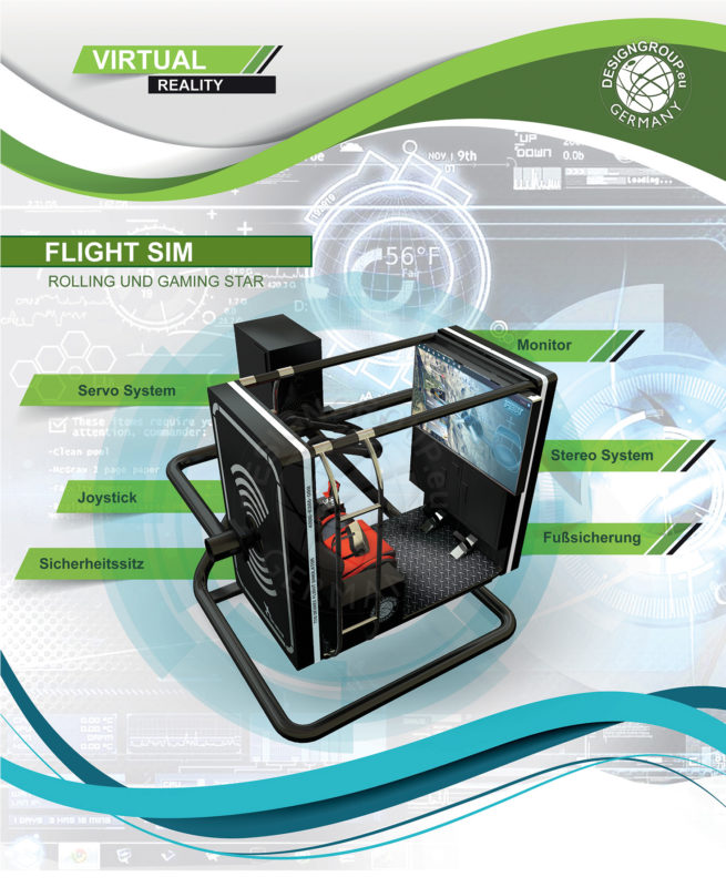 Dieser verfügt über eine Kabine, welche über zwei unabhängigen Achsen gelagert und jeweils um 360 Grad zueinander verkippt werden kann. Der Simulator erzeugt ein realistisches Flugempfinden und gigantisches Flugerlebnis, wobei der Spieler keineswegs nur passiver Statist ist. Im Gegenteil, er ist Herr der Lage und steuert seine Maschine sicher und gezielt. Flugspaß ohne Grenzen und ohne Risiko!