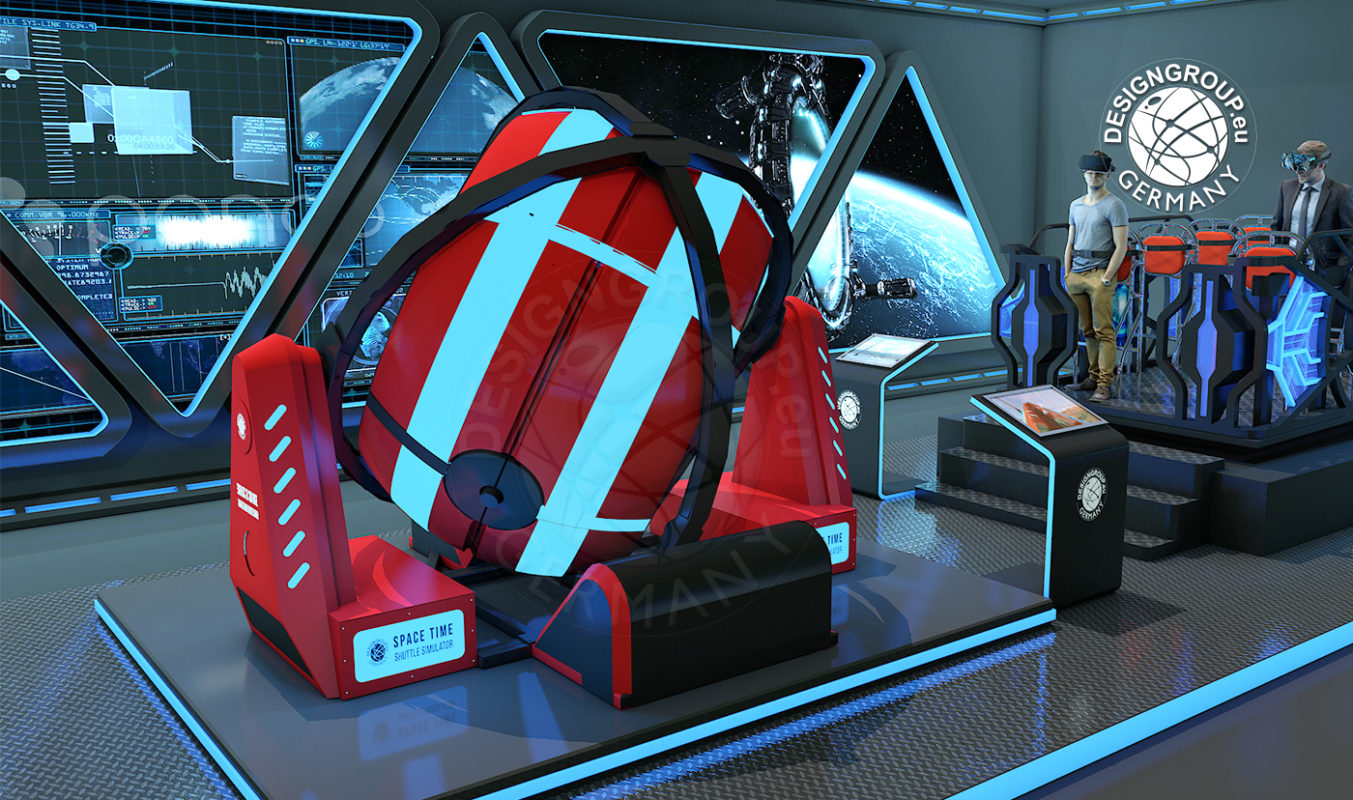 Das Zeitmaschinenshuttle ist ein doppelsitziger Flugsimulator, in welchem äußerst anspruchsvolle und zukunftsweisende Technologie verbaut ist. Die Spieler sitzen in ihrer sphärischen Kabine. Sie kann um 360 Grad rotieren, da sie auf zwei vertikalen Richtungsachsen gelagert ist. Flugmanöver und Luftkämpfe in einer absolut sicheren Umgebung sind hier kein Problem.