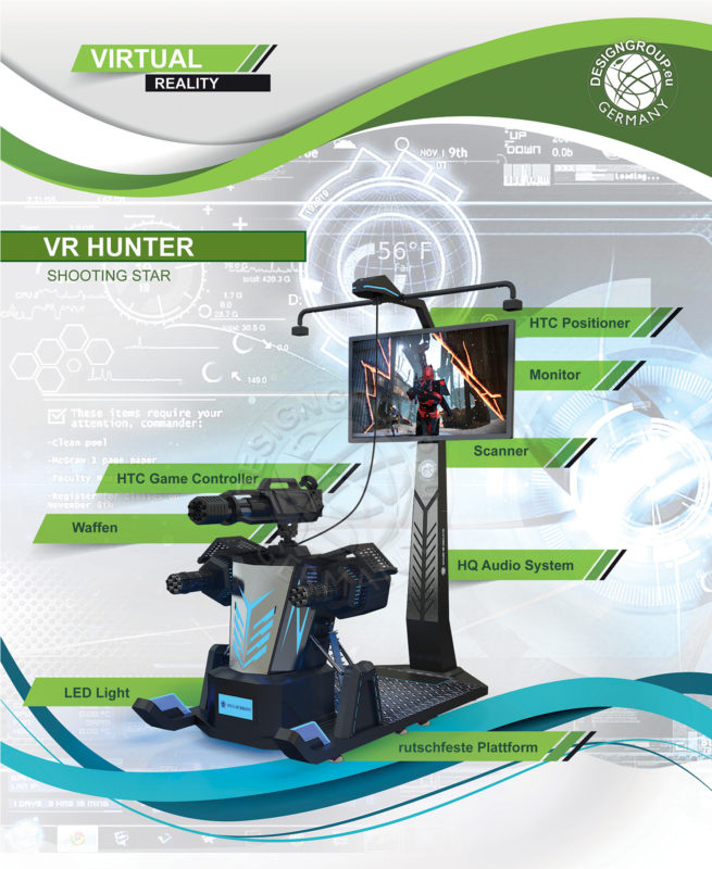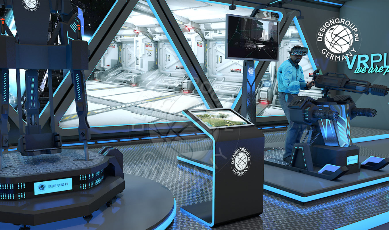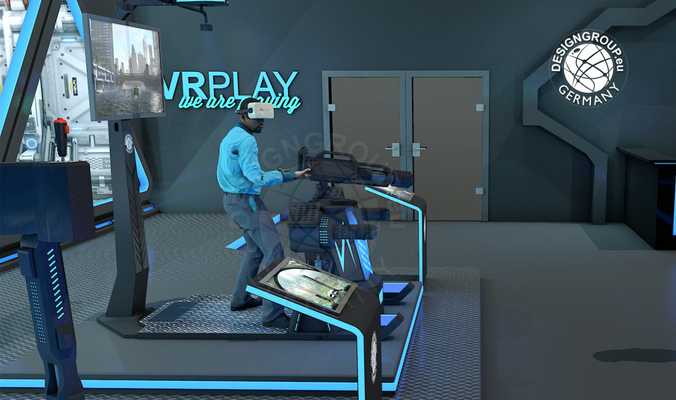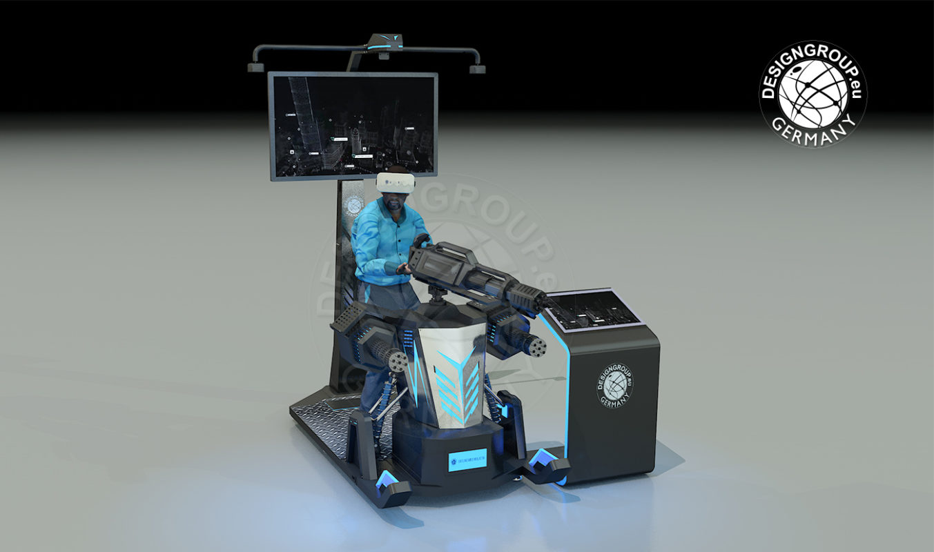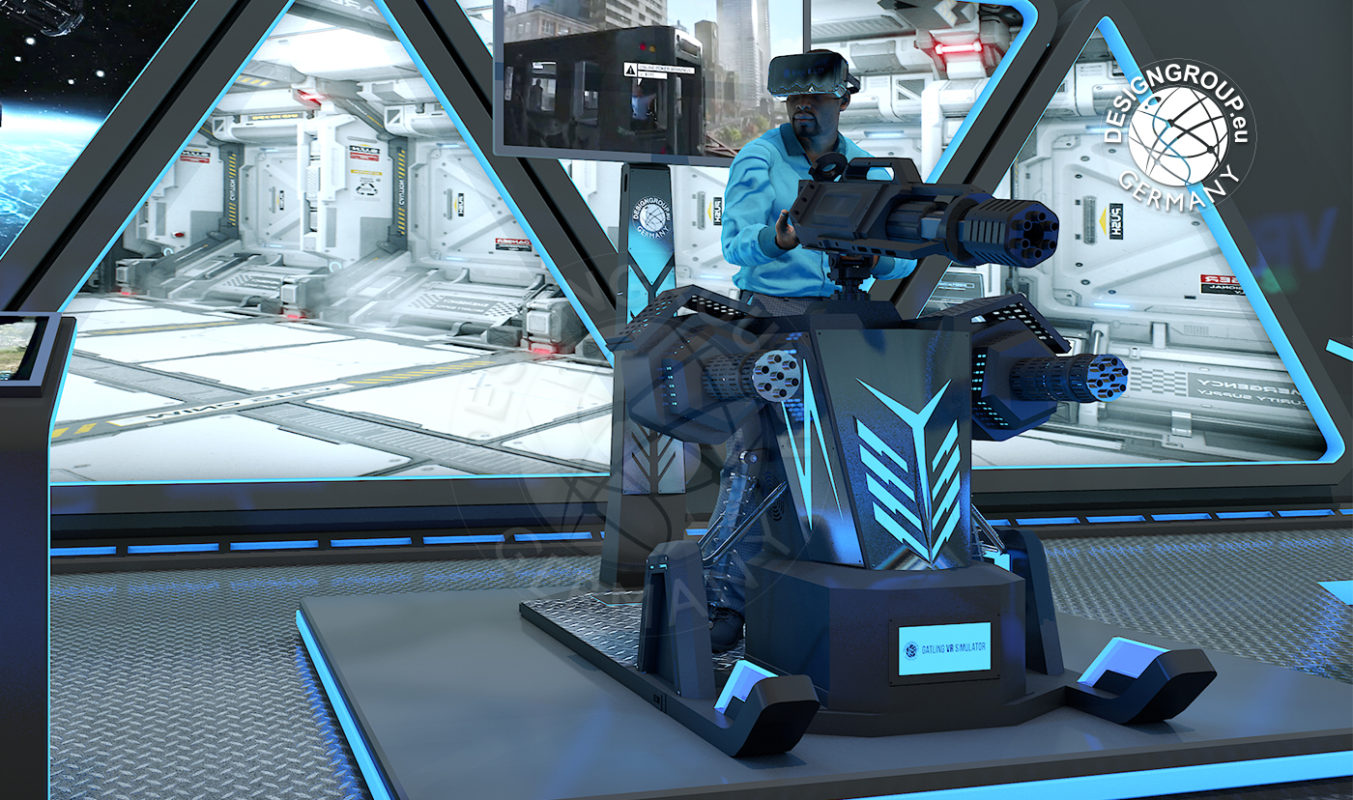 Dieser VR-Simulator verfügt über drei mächtige, rotierende „Waffensysteme“, welche bereits auf